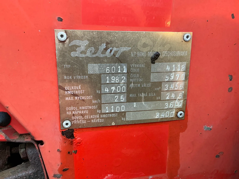 Zetor 6011 tractor, manufactured in 1983, with 2 WD drive (rear wheel drive).